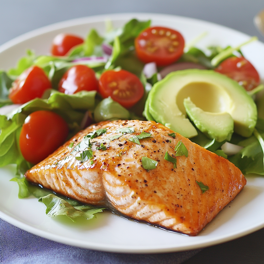 Baked Salmon Fillet with Avocado & Tomato Salad
