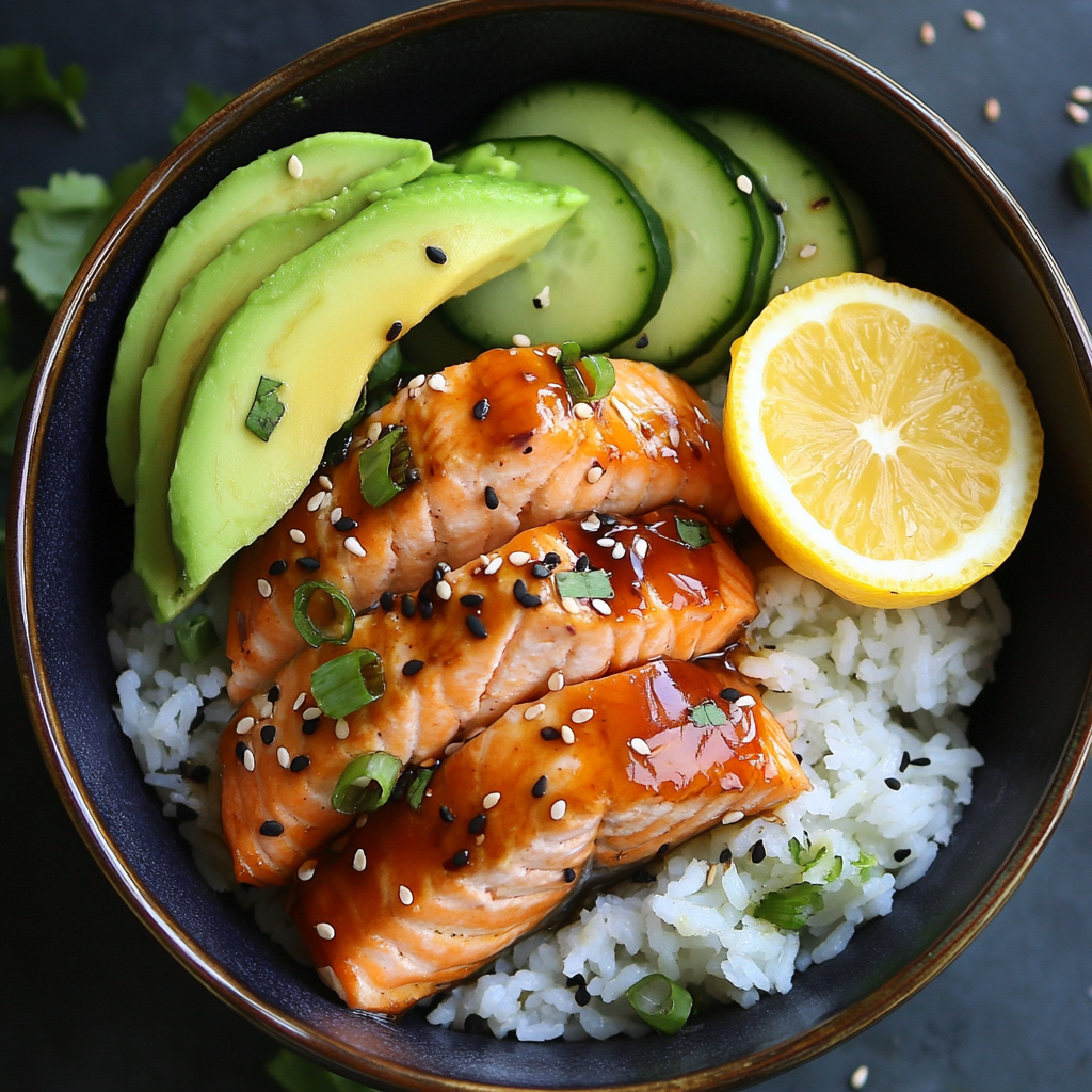 Teriyaki Salmon Bowl with Avocado & Cucumber