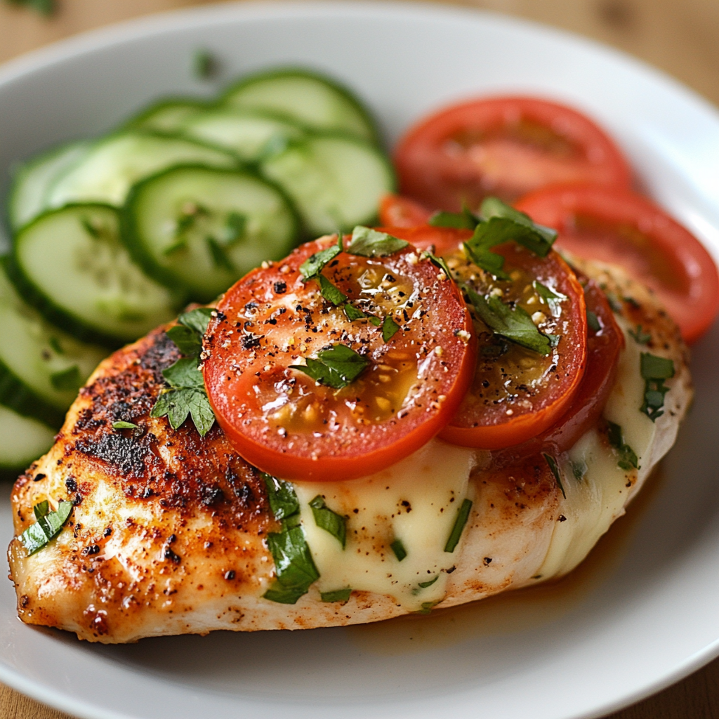 Tomato & Cheese Stuffed Chicken Breast with Cucumber-Tomato Salad