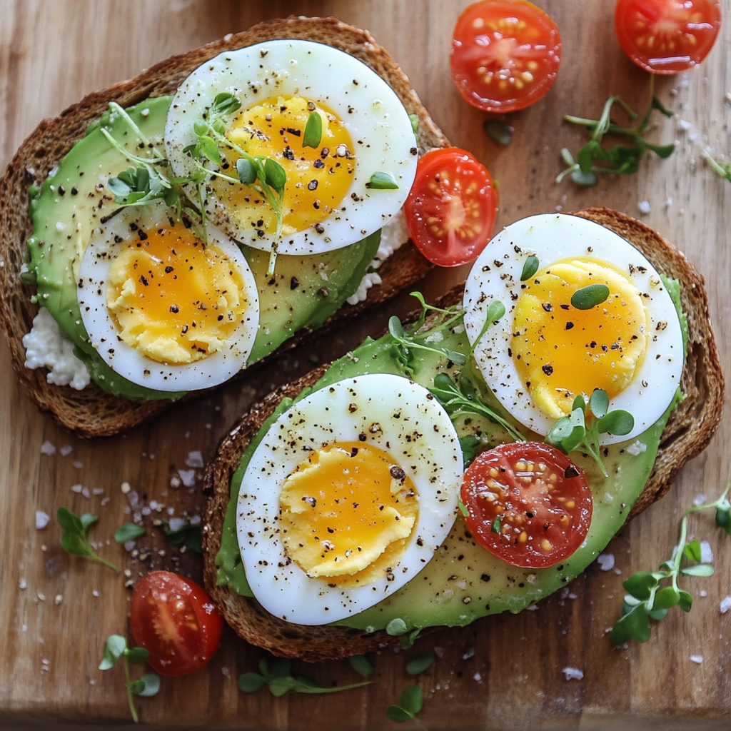 Avocado Tomato Cottage Toasts with Jammy Eggs