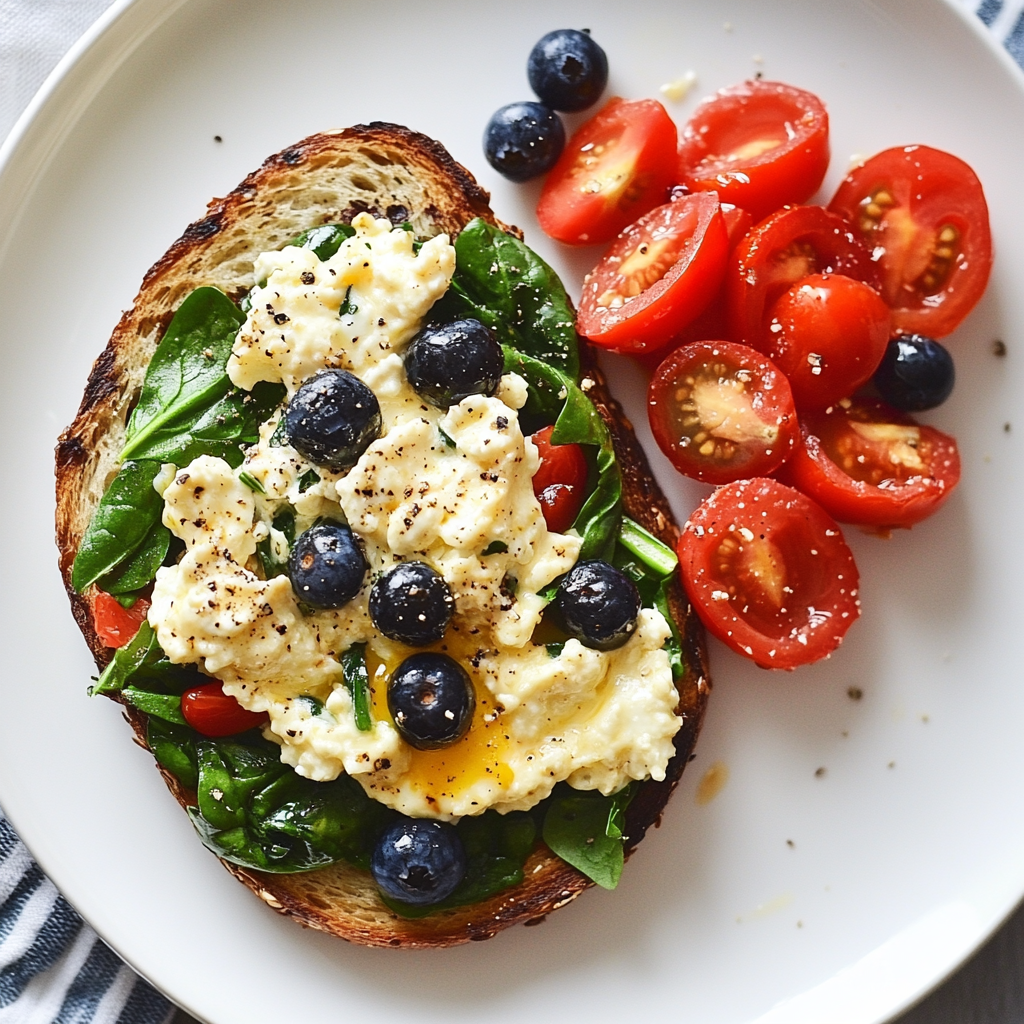 Veggie Egg Scramble with Cottage Cheese & Blueberry Toast