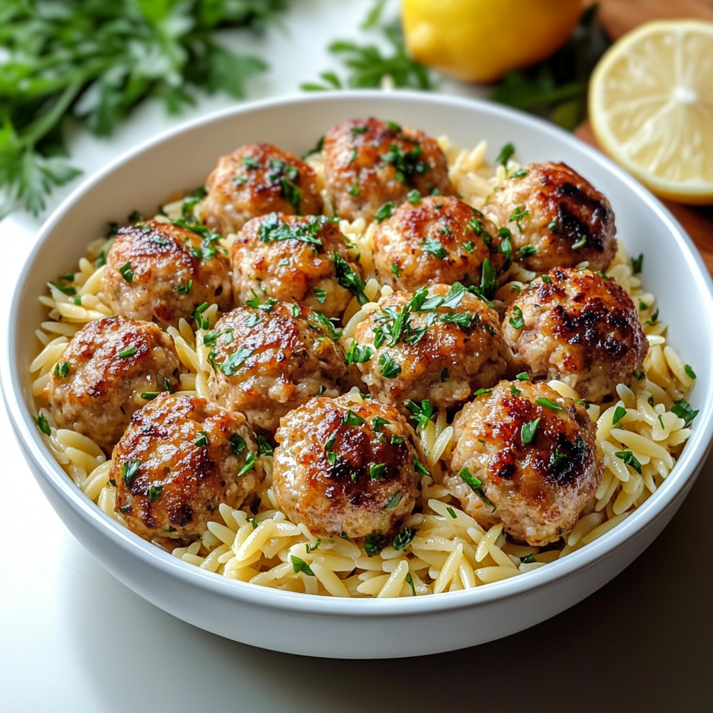 Irresistible Greek Chicken Meatballs with Lemon Orzo Recipe