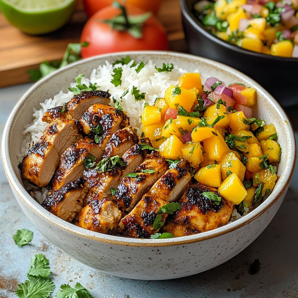 Flavorful Jerk Chicken Bowls with Mango Salsa & Rice