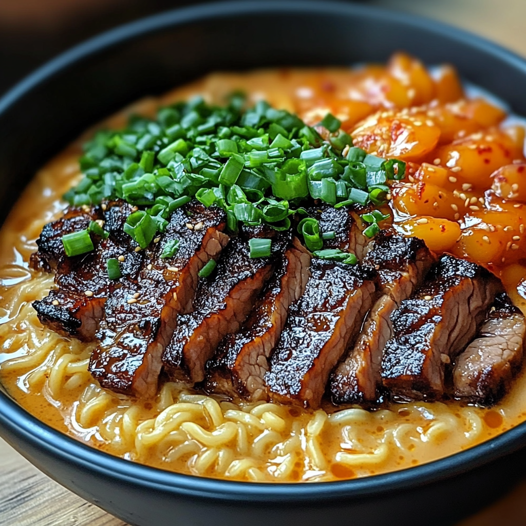 Irresistible Spicy Korean Ramen with Grilled Beef & Creamy Sauce
