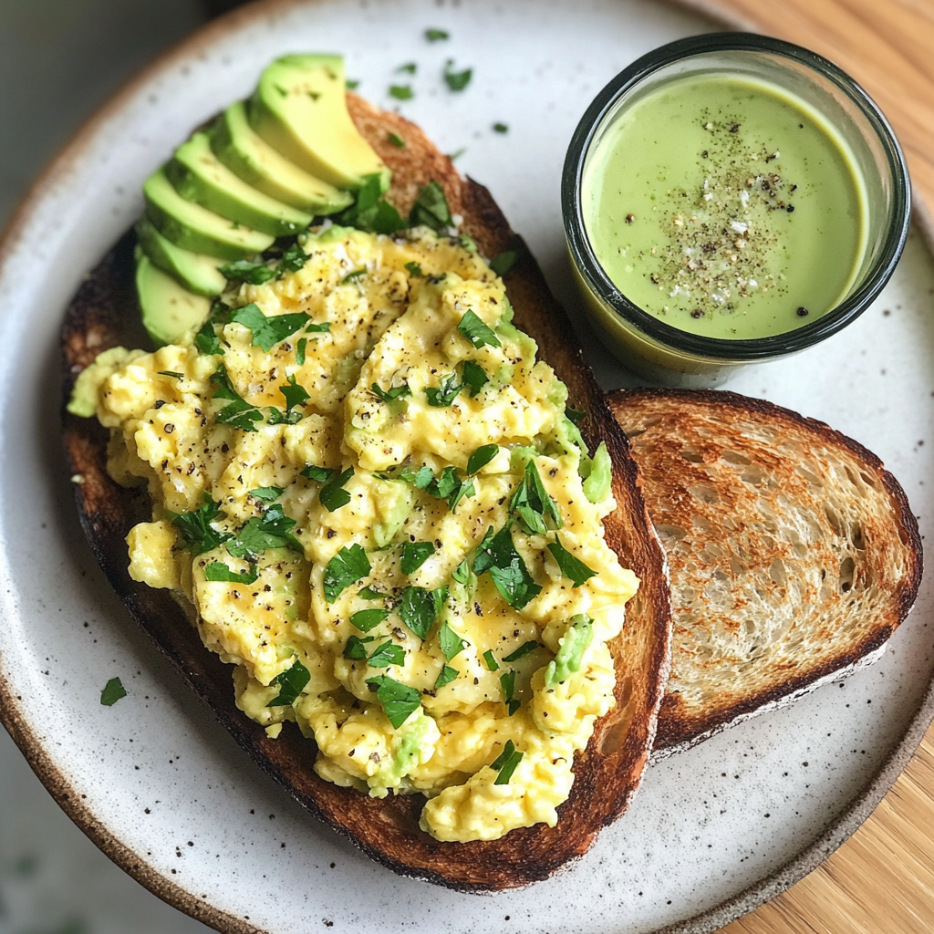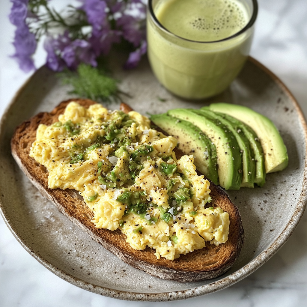 Indulge in a delightful morning with Creamy Scrambled Eggs, Avocado Toast, and a refreshing Iced Matcha Latte. This vibrant breakfast combination is not only quick and easy to make but also bursting with flavor and nutrition.