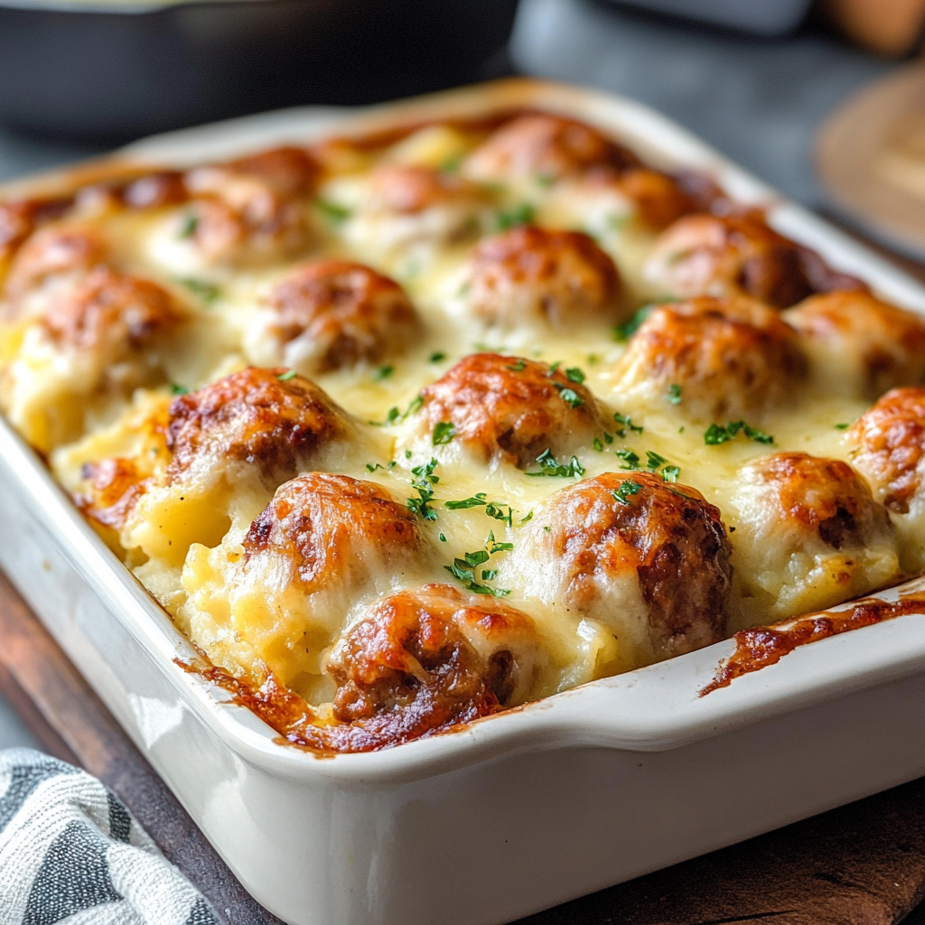 Start by cooking the meatballs in a skillet until browned. While they cook, boil potatoes until tender. Mash them with your favorite seasonings before combining everything in a casserole dish for baking. This sequence ensures juicy meatballs and creamy potatoes.