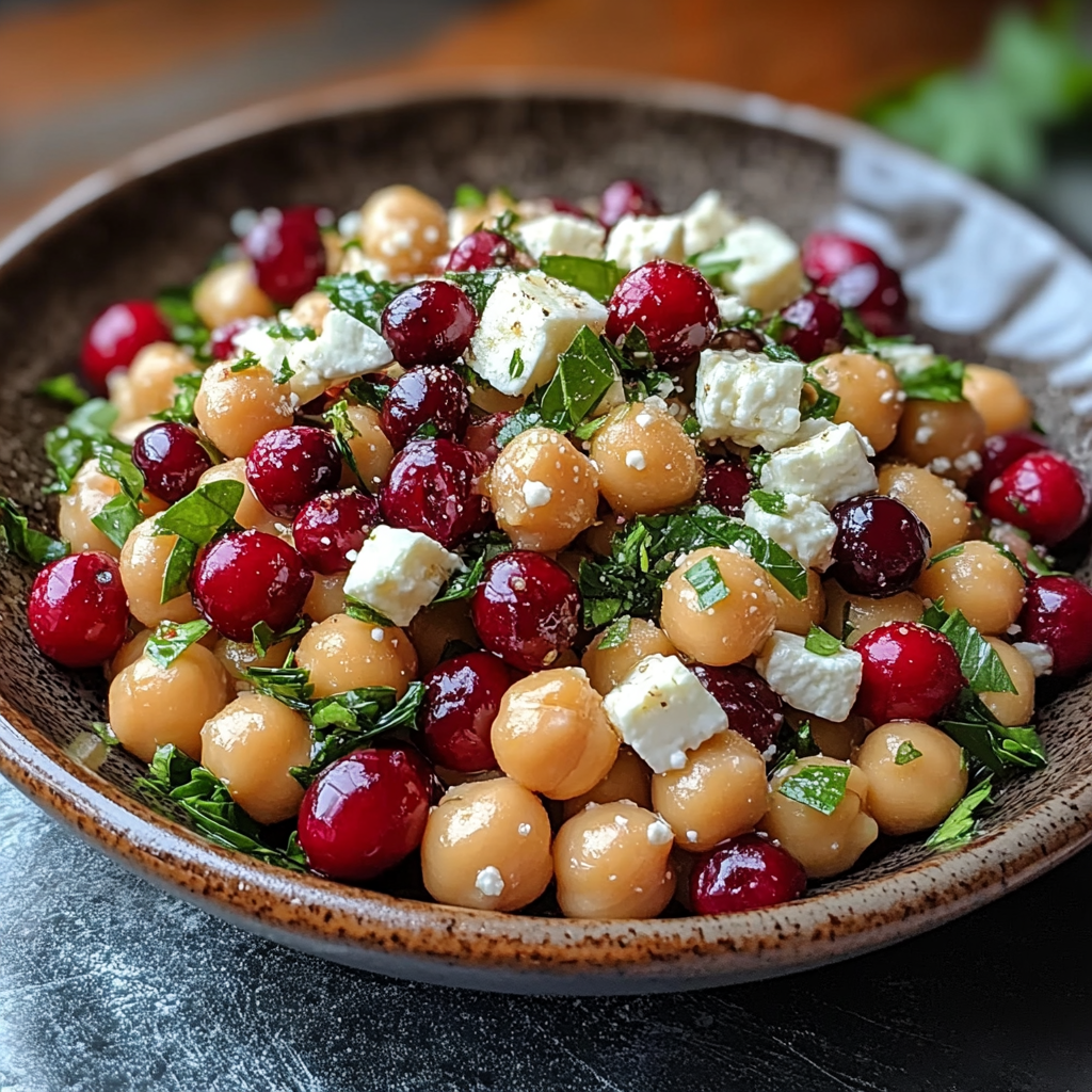 Feta and Cranberry Chickpeas with Lemon Vinaigrette is a colorful, nutritious salad that combines creamy feta cheese, sweet dried cranberries, and protein-packed chickpeas. Tossed in a zesty lemon vinaigrette, this dish is perfect for picnics, lunches, or as a delightful side at any gathering. Quick to prepare and bursting with flavor, it’s sure to impress your friends and family!