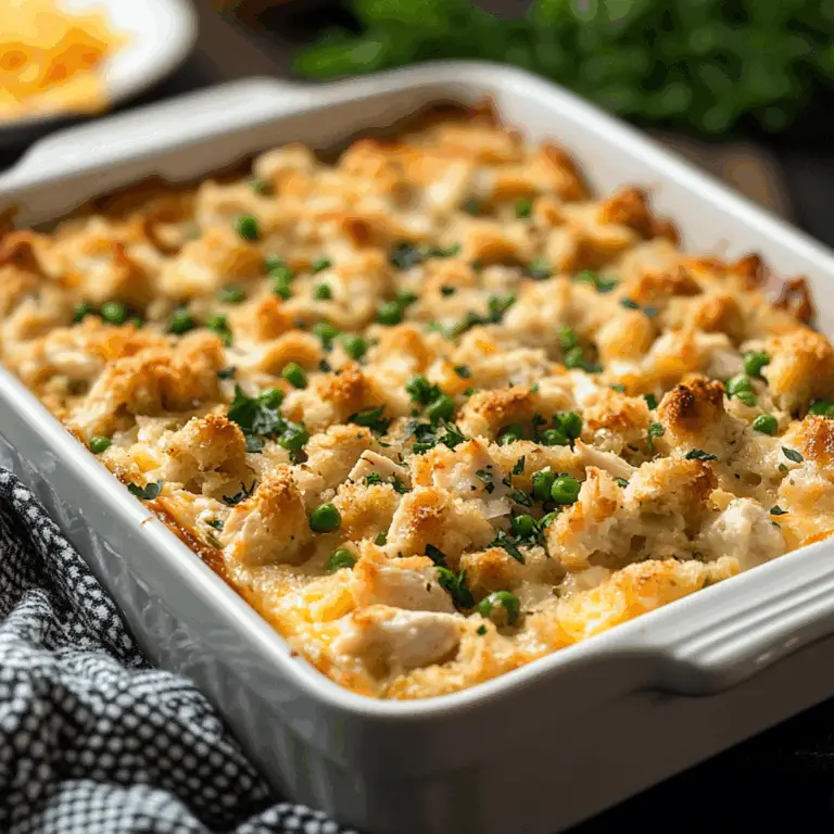 Dolly’s Chicken and Stuffing Casserole is a delightful dish that brings warmth and comfort to any table. Ideal for busy weeknights, family gatherings, or festive occasions, this casserole features a creamy blend of chicken, savory stuffing, and rich soups. With its ease of preparation and the option to customize with cheese or peas, it truly stands out as a go-to recipe for all.