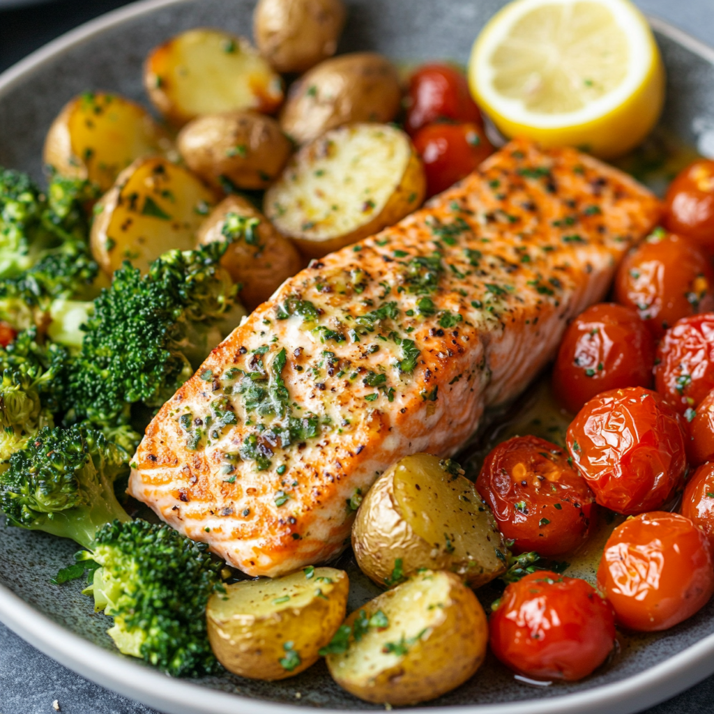 How to Perfect Garlic Butter Salmon with Roasted Veggies & Baby Potatoes
