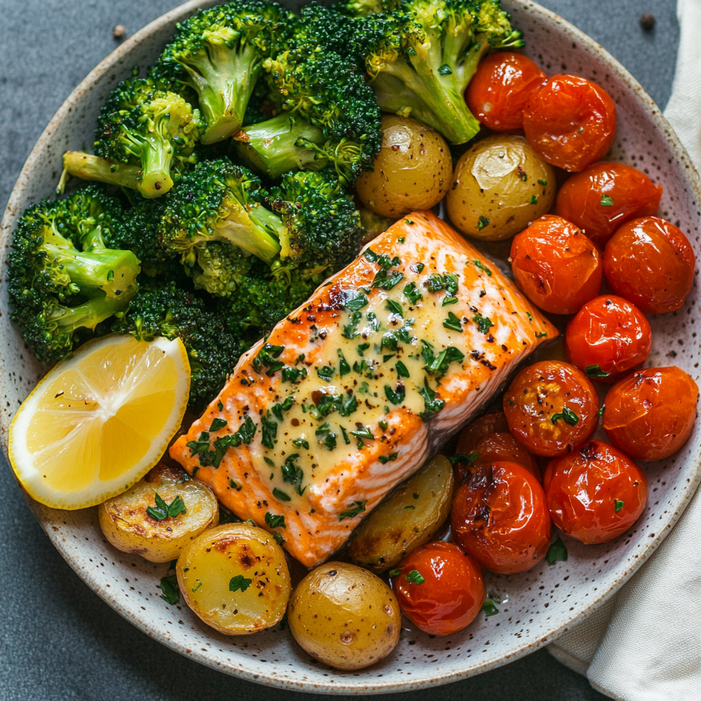 Best Side Dishes for Garlic Butter Salmon with Roasted Veggies & Baby Potatoes