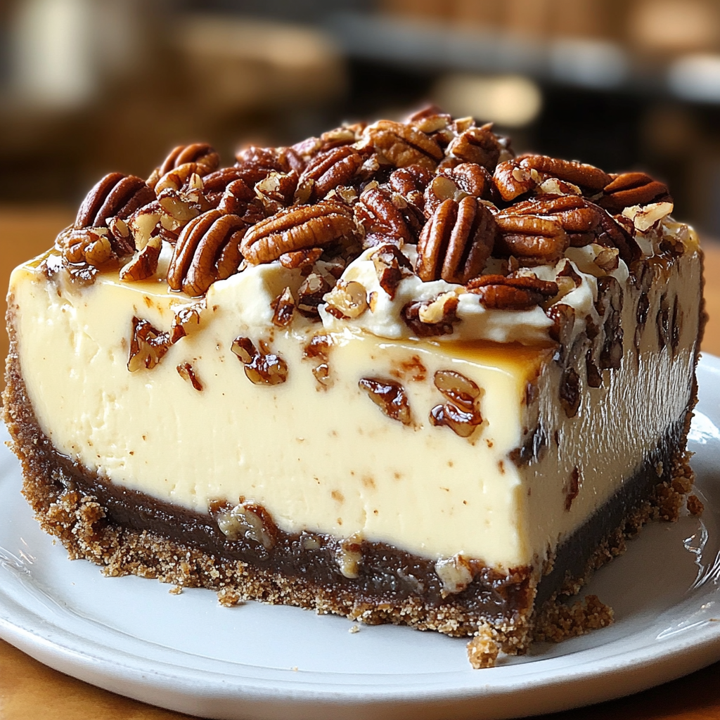 Keywords: For added flavor, consider swirling in caramel or chocolate chips into the cheesecake filling before baking. You can also substitute walnuts or almonds for pecans if desired.