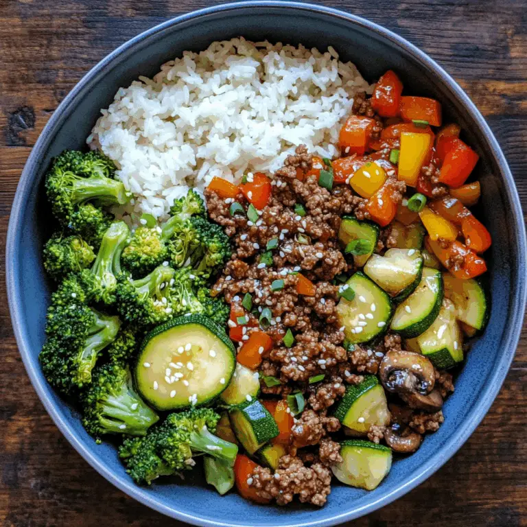 Savory Ground Beef & Veggie Stir-Fry Bowl is your perfect go-to meal for a busy weeknight or a cozy weekend dinner. This dish combines seasoned ground beef with colorful stir-fried vegetables, all served over fluffy rice. It’s not only delicious but also easy to prepare and adaptable for various occasions, making it a wonderful addition to your recipe repertoire.
