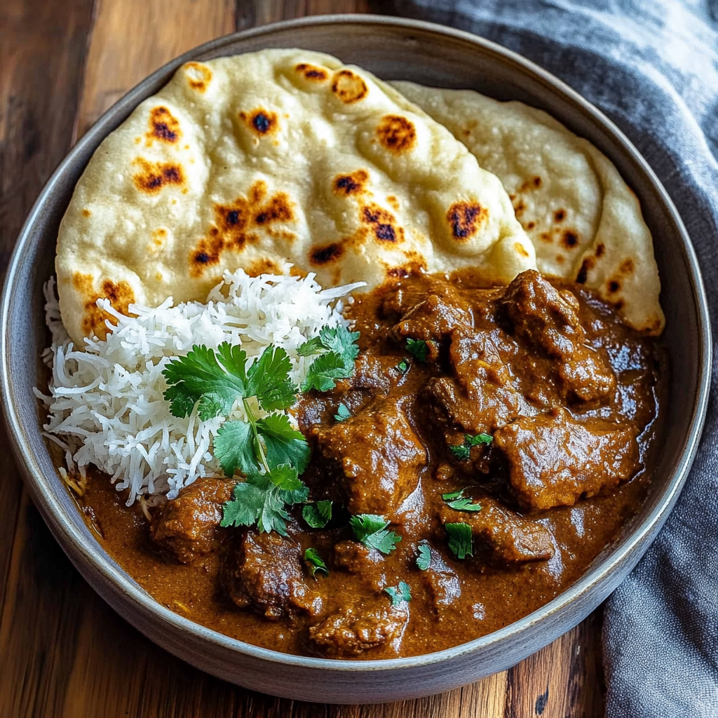 The Slow-Cooked Beef Curry with Buttery Garlic Naan is a delightful dish that brings warmth and comfort to any table. Perfect for family gatherings or cozy weeknight dinners, this recipe boasts tender beef simmered in a rich, aromatic curry sauce paired with soft, buttery garlic naan. With its unique blend of spices and the ease of slow cooking, this meal is sure to impress everyone.