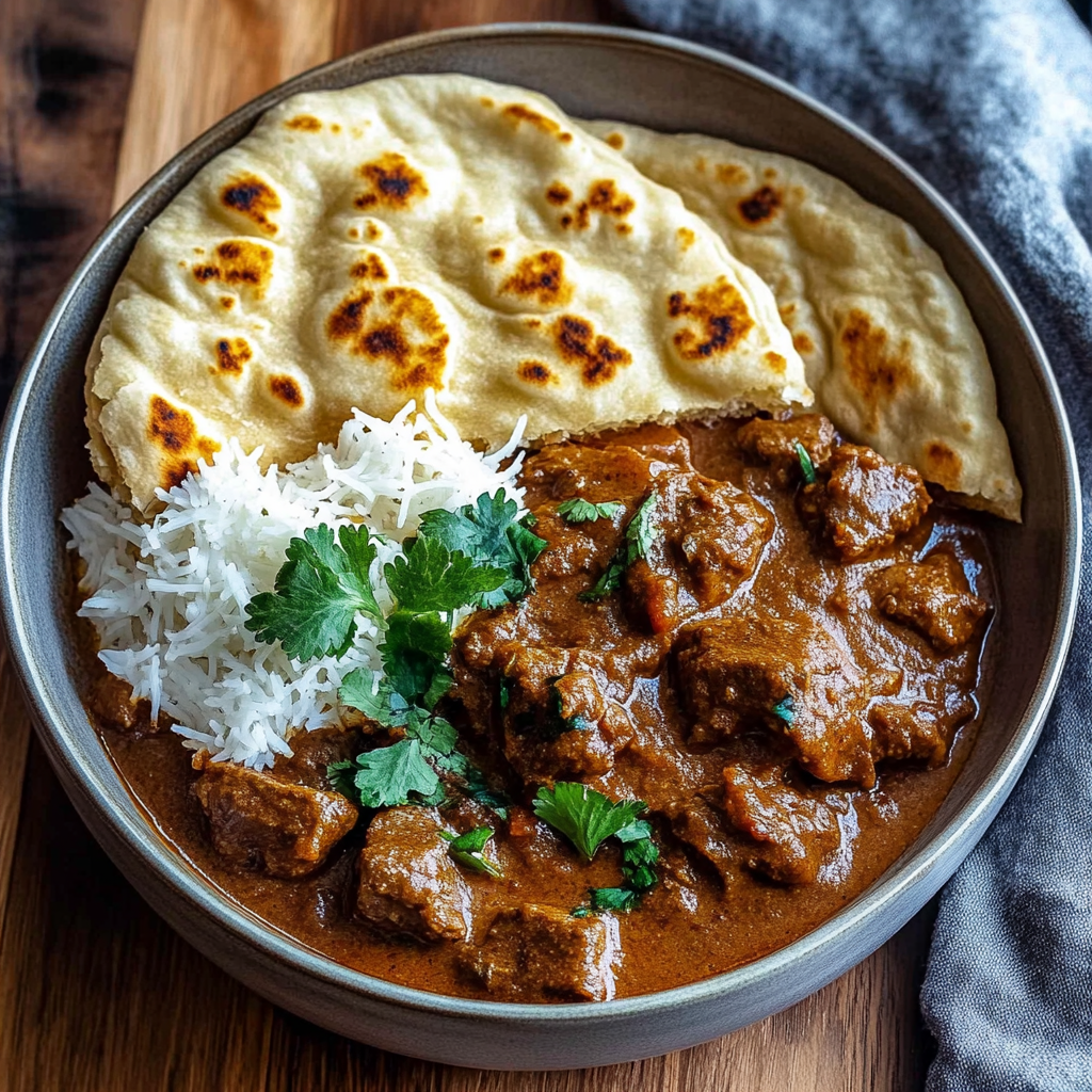 Slow-Cooked Beef Curry with Buttery Garlic Naan