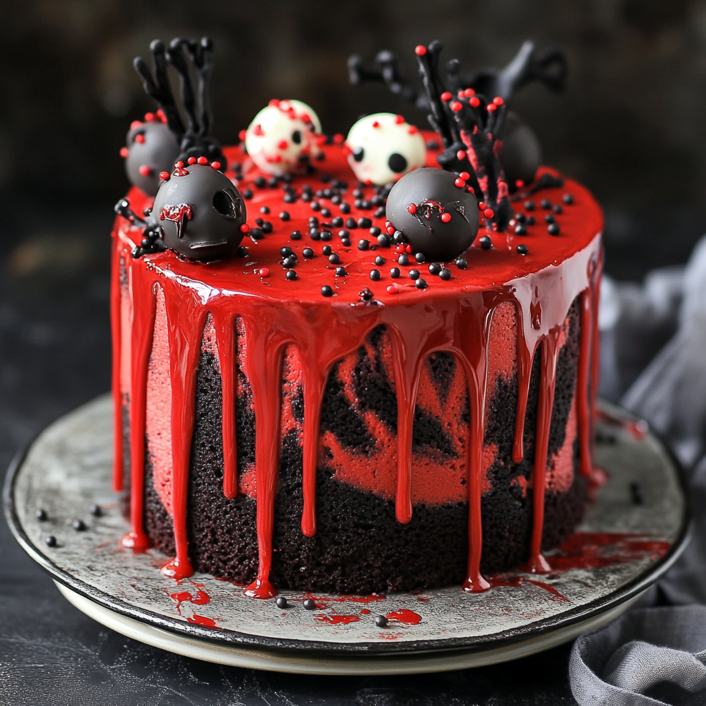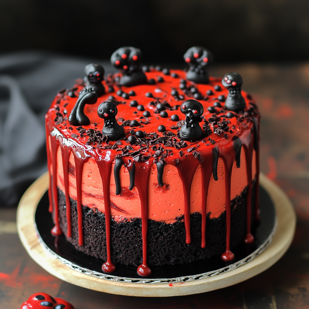 - Create a dramatic effect by allowing the red blood icing to drip over the edges of the cake. This adds an eerie touch that’s sure to impress.